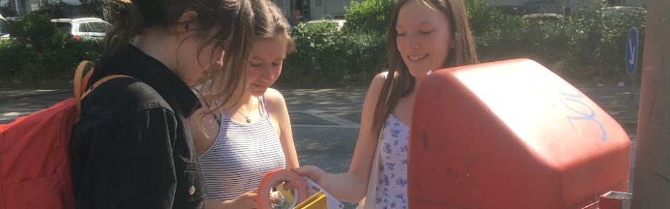 Projektidee: Wie können wir durch Botschaften im öffentlichen Raum zwischenmenschliche Distanz überwinden, die durch die Lockdowns und andere Einschränkungen ausgelöst wurde? Auf der Suche nach Antworten auf diese Frage sind die Schüler*innen der Klasse 8b des Gymnasiums Corveystraße mit ihrem Stadtviertel auf kreative Weise schriftlich in Kontakt getreten. Die Schüler*innen ließen sich zum größten Teil sehr offen und motiviert auf das Thema ein und entwickelten fantasievolle Botschaften an die Öffentlichkeit. Ihre größte Motivation lag darin, in diesen pandemischen Zeiten andere Menschen zu erfreuen bzw. ihnen ein Lächeln zu entlocken. Viele Schüler*innen haben während des Projektes die Erkenntnis gewonnen, dass sie ihr Viertel aktiv mitgestalten können und mit ihren Botschaften wahrgenommen werden. Dies ist eines der wichtigsten Ergebnisse des Projektes. Die Schüler*innen konnten teilweise direkt erleben, wie ihre kreativen Impulse bei Passant*innen (meist) positive Reaktionen erzielten. Das freute und bestätigte sie in ihrem Tun. Die Schüler*innen haben in dieser Zeit erlebt, dass sie mit Leichtigkeit den sie umgebenden Raum auf legalem Weg verändern können und dass sie die Freiheit haben, das zu tun. Wir hoffen, dass sie durch das Projekt angeregt wurden, auch in Zukunft in und mit ihrem Viertel kreativ zu kommunizieren.